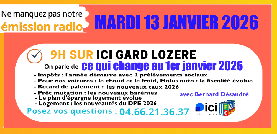 Mardi 13 janvier 2026 9h sur Ici Gard Lozère on parle de CE QUI CHANGE EN 2026 avec Bernard