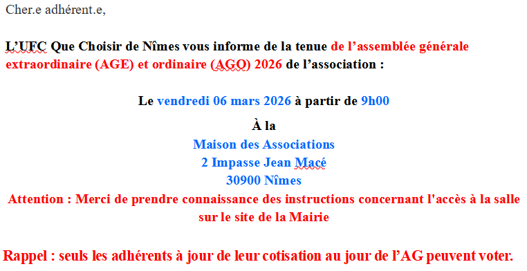 contact@nimes.ufcquechoisir.fr en précisant dans l’objet du message : AG 2026.
